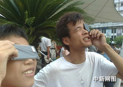 地震災(zāi)區(qū)綿陽太陽似"上弦月" 民眾爭(zhēng)睹天文奇觀