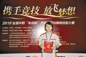 本報訊 2010年全國職業(yè)院校技能大賽日前在天津結束,重慶代表團奪得9個一等獎。我市16歲女生徐潔,在汽車維修技能比賽中技壓眾多男生摘桂,成為這個項目設立以來唯一一名奪冠的女生。