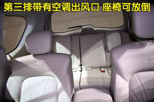 接下來我們就要說到第三排座椅了,也許這里的使用次數并不會很多,但是英菲尼迪同樣為第三排乘客提供了空調出風口,大大提高了舒適度,如果有人故意將我擠到最后面的話,我想我還是可以接受的。如果當你需要更大的空間作為儲物用途時,第三排座椅可以進行4/6拆分放倒,這一點你要相信它的實力?傊绻阈枰恍﹤性,又想兼顧品質與豪華舒適,這款英菲尼迪全新QX56應該會很貼合你的想法。