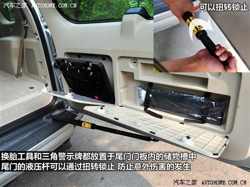 普拉多尾門的液壓桿可以通過(guò)扭轉(zhuǎn)進(jìn)行鎖止,這樣可以有效防止因?yàn)檎`關(guān)車門帶來(lái)的意外傷害,這個(gè)設(shè)計(jì)不需要太多成本但是非常體貼。而另一個(gè)小亮點(diǎn)是后備廂內(nèi)的一個(gè)220V交流電源,接些小電器非常方便。