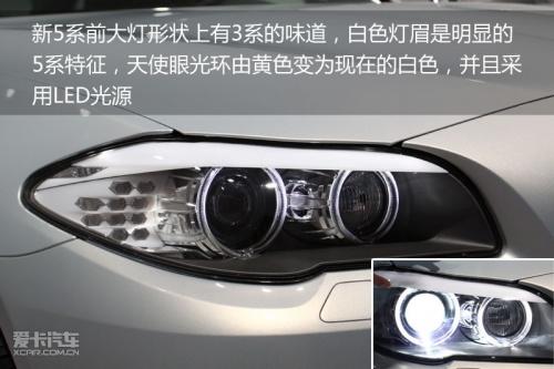 前大燈從外形上看有點類似于現(xiàn)款3系的設(shè)計,但很明顯的5系風(fēng)格是擁有白色的燈眉設(shè)計,據(jù)寶馬官方介紹,這樣的設(shè)計將使得前大燈給人一種注視前方的感覺,更加有神。而與上代5系相比非常明顯的變化是天使眼大燈由此前的黃色變?yōu)榘咨訒r尚和富有科技感,并且天使眼的發(fā)光源采用了LED燈組設(shè)計。
