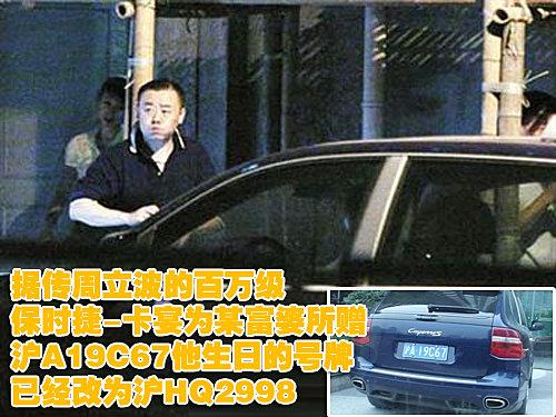 周立波目前的座駕是一輛價(jià)值百萬的藍(lán)色保時(shí)捷新卡宴SUV,上海的觀眾以及媒體早已經(jīng)對(duì)這輛座駕非常熟悉。但是在這輛座駕的背后還有著一段故事。其前妻張潔曾經(jīng)對(duì)媒體表示,該車系溫州富婆所贈(zèng),因此自從“博客門”后,周立波就再也沒有開卡宴到戲院演出。