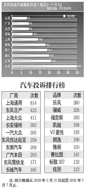 2010年4月6日,汽車投訴網(wǎng)接到一宗“通用樂風(fēng)發(fā)動(dòng)機(jī)收油不降速油耗大增”的投訴。4月12日,該類投訴明顯升溫,至18日晚22:30,在短短的一周時(shí)間里,僅汽車投訴網(wǎng)就受理了92宗類似的投訴,扣除兩宗重復(fù)投訴外,日均投訴量近13宗,創(chuàng)下了汽車投訴量單個(gè)品牌日均投訴量的記錄。到5月11日,參與集體投訴的車主已經(jīng)超過(guò)200宗。
