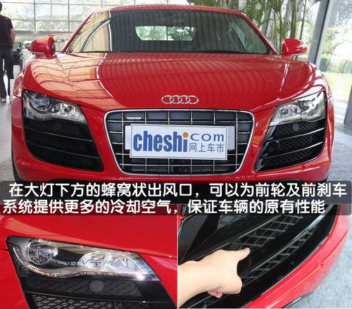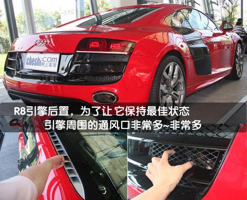 奧迪R8的駕駛艙相對(duì)靠前,而在駕駛艙之后則是巨大的引擎室——這是典型中置發(fā)動(dòng)機(jī)賽車的特征,這種設(shè)計(jì)也大大優(yōu)化了車身前后比例,使R8的前后重量分達(dá)到了44:56。透過R8后方透明的發(fā)動(dòng)機(jī)罩,V10 5.2升FSI發(fā)動(dòng)機(jī)安靜的伏臥其中。在設(shè)計(jì)師所營(yíng)造的視覺效果下,人們很容易把它與賽車聯(lián)系在一起。即便在一個(gè)不了解賽車的人面前,也一定能從中看出它的與眾不同和獨(dú)一無二。