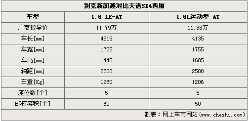 別克新凱越的定位很明確,針對(duì)緊湊級(jí)家庭用車,其三圍是:4515mm*1725mm*1445mm;與此新凱越形成鮮明對(duì)比,鈴木sx4兩廂走的可是正統(tǒng)的Cross風(fēng)格,車身尺寸為:4135mm*1755mm*1605mm。之所以選擇SX4兩廂版作為對(duì)比的對(duì)象,是因?yàn)楦目钴囆偷匿N量比起三廂版好很多,可以與新凱越正面交鋒。從數(shù)據(jù)上來看三廂的新凱越在車長(zhǎng)和軸距方面優(yōu)勢(shì)明顯,而SX4兩廂則是以車身高度和寬度見長(zhǎng)。如此看見后排的空間感受還是新凱越更舒服一些,較高的駕駛員視角是SX4的亮點(diǎn)之一。