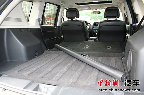 前排座椅乘坐的舒適性相當(dāng)不錯。局限于車身尺寸,后排空間略顯稍小,想悠閑的翹起二郎腿是不可能了,但一般的乘坐是夠了。后排座椅可以等比例放倒,放平后,車廂后部擁有了1277L的超大行李箱空間,對于盛放普通行李而言已經(jīng)綽綽有余。不過遺憾的是,在小儲物空間處理方面,Jeep指南者缺乏了一些人性化的設(shè)計。