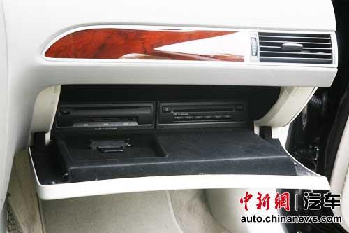 副駕駛的手套箱要按動中控面板上的按鈕來開啟。6碟CD、SD卡插槽、用在車載電話上的SIM卡插槽,以及DVD系統(tǒng)都在這里了。只是這樣一來,這個(gè)手套箱也就真的只能放手套用了……