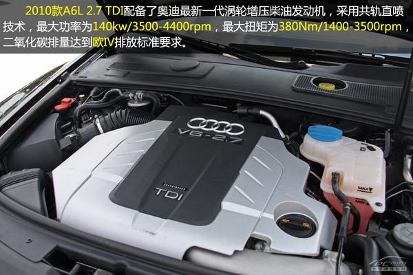 第一個(gè)上場(chǎng)的是一汽奧迪2010款A(yù)6L 2.7TDI車(chē)型。此車(chē)型代表了目前奧迪最先進(jìn)的柴油發(fā)動(dòng)機(jī)技術(shù),而且是國(guó)內(nèi)首款裝備柴油發(fā)動(dòng)機(jī)的高檔車(chē)型,可以說(shuō)是業(yè)內(nèi)第一個(gè)吃螃蟹的,因此編輯選了這款作為柴油車(chē)型的代表。