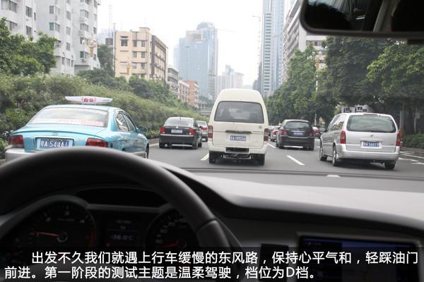 我們以D檔在市內溫柔地行駛了約200公里,遇見紅燈必減速停車,絕不嘗試僥幸通過,堅決不踩地板油,不急加速超車,行車電腦顯示百公里平均油耗為9.1L。雖然與廠家公布的油耗數據有明顯出入,但面對這走走停停的路況,能維持在百公里9L左右的水平,可以了。另外補充一下,由于測試當天廣州處于高溫狀態(tài),路上地面溫度估計超50度,所以全程開空調,消耗部分燃油。