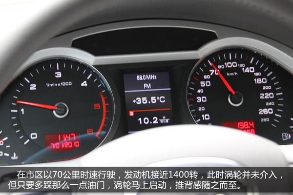 在市區(qū)內以時速70公里行駛,發(fā)動機轉速接近1400轉,此時渦輪并未介入,但只要多踩那么一點油門,渦輪馬上啟動,推背感隨之而至,70~100公里時速瞬間完成。