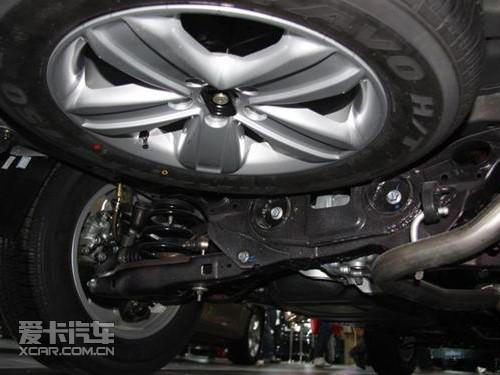 帝豪EX7的前懸掛為麥弗遜式,后懸架為雙叉桿獨(dú)立式,這樣的設(shè)計(jì)與RAV4相同,從圖中我們能看出在一些微小細(xì)節(jié)上相似度也十分高。不過備胎被隱藏在車身下方,這一點(diǎn)則與RAV4不相同。