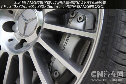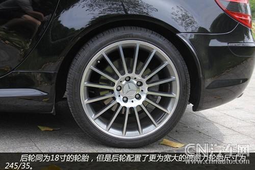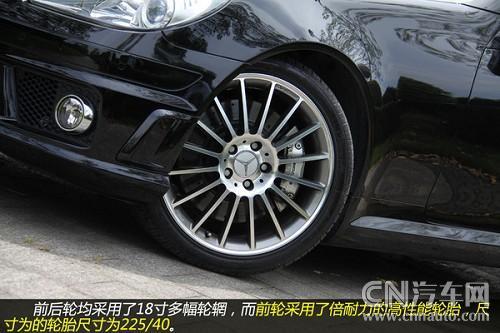 從輪轂以及剎車鉗都可以看到有AMG的標(biāo)識(shí),可以看出這些都是AMG為SLK55重新打造得。配置18吋多幅式鋁圈的SLK55AMD,配用的輪胎是前225/40、后245/35/18P-Zero紅飆。煞車因動(dòng)力和車重均較小之故,只裝置了前六后四活塞卡鉗+大徑打孔通風(fēng)碟(F:340×32mm/R:330×26mm),不過它的前碟中心盤采用了鋁合金的兩片式構(gòu)造,對(duì)于減輕簧下負(fù)重與抑制熱衰退肯定有正面的作用。
