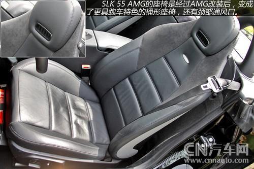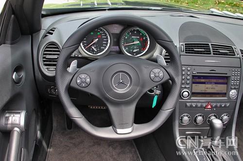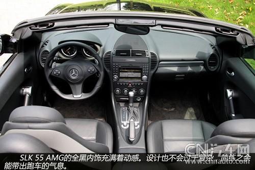 內(nèi)裝一樣非常有個(gè)人風(fēng)味的SLK55,座椅、內(nèi)門板、中央扶手均為Nappa高級(jí)真皮制成,并且有四種顏色可供選擇,AMG的座椅另外還經(jīng)過(guò)包覆與支撐性的加強(qiáng),肩部亦可追加Alcantara麂皮,藉以應(yīng)付激烈操駕的需求。此車的其它不同點(diǎn)尚包括320km/h時(shí)速表、跑車方向盤、鋁合金腳踏板、專用地毯、不銹鋼門檻等等,而Thermatic自動(dòng)空調(diào)、室內(nèi)照明組也列為標(biāo)準(zhǔn)配備。