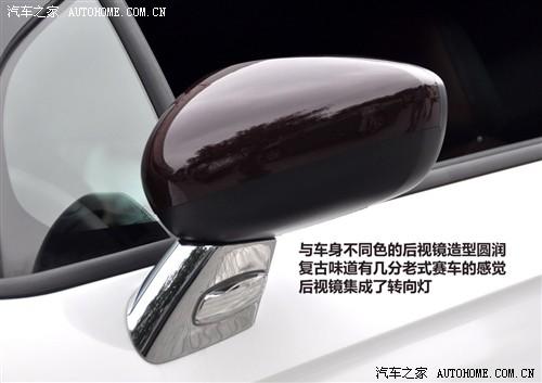 帶有鍍鉻裝飾的后視鏡造型圓潤,有幾分與老式賽車的感覺,并集成了轉向燈,后視鏡面積不小,相信視野應該也不會差。