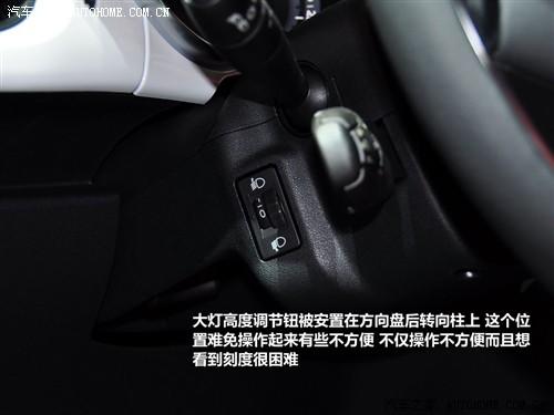 DS3帶有大燈高度調(diào)節(jié),位置在方向盤(pán)后的轉(zhuǎn)向柱側(cè)面,我們認(rèn)為不僅操作起來(lái)有些不方便,而且想看到刻度有些困難。