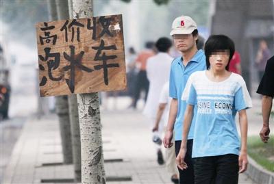 7月13日,在南四環(huán)花鄉(xiāng)橋北側(cè)路邊,一個(gè)印著“收購(gòu)泡水車(chē)”的牌子引起了記者的注意。守在旁邊的小販告訴記者,他們專(zhuān)門(mén)收泡水車(chē),價(jià)格好商量。