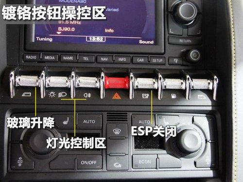 在GallardoLP 550-2多媒體音響下部,配置了一排鍍鉻按鈕,包含玻璃升降、大燈霧燈開(kāi)啟、警示燈、ESP開(kāi)閉、油箱開(kāi)啟等多功能控制。