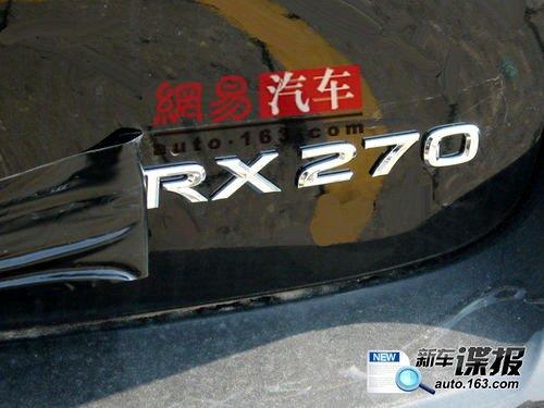 外觀上新車和RX350沒有差別。從命名來看,新車將搭配一臺(tái)排量更小的2.7L發(fā)動(dòng)機(jī)。從RX系列與豐田漢蘭達(dá)出自同一平臺(tái)的情況來看,RX270所搭配機(jī)型應(yīng)該就是漢蘭達(dá)2.7L之上的IAR-FE直列四缸發(fā)動(dòng)機(jī)。最大功率190馬力,最大扭矩達(dá)到252Nm。