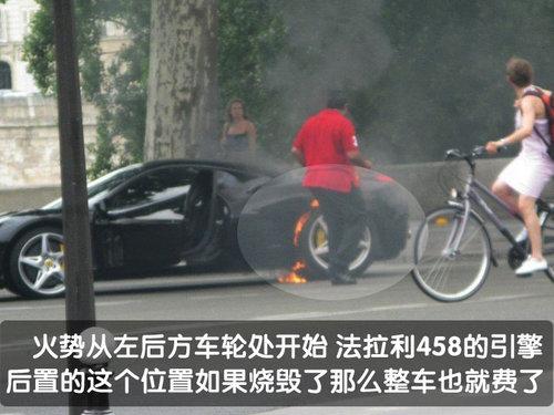 不過(guò)近日一則來(lái)自法國(guó)的消息不僅僅意味著一臺(tái)名貴的法拉利已經(jīng)報(bào)廢,同時(shí)也讓我們?cè)俅螌⒛抗馔断蛄顺?jí)跑車(chē)的頻繁自燃。這一次事故發(fā)生在法國(guó)巴黎,這位身著紅色衣服的車(chē)主看上去絕對(duì)是一個(gè)超級(jí)的法拉利車(chē)迷(從他紅色的衣服就能看出來(lái))。據(jù)他介紹他的這臺(tái)嶄新的458才僅僅買(mǎi)了幾天就這樣被燒毀了。