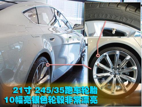 最為一款轎跑車它的四只車輪當(dāng)然要非常搶眼,這款概念車使用到了4只21寸的亮銀色鋁合金輪轂,筆直的線條盡顯跑車的硬朗與激情,輪胎匹配為245寬度的高扁平比跑車級輪胎,相信這對于跑車性能也會有很大的幫助。