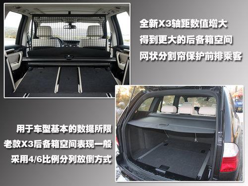 新款寶馬X3擁有2810mm的長軸距,后排乘車的坐乘感受得到了很好的保障,腿部空間是最明顯得到體現(xiàn)的地方。老款X3用于上市時間較長,數(shù)據(jù)方面相對沒有對太多優(yōu)勢可言,但常規(guī)情況下還是可以滿足日常的使用需求的。
