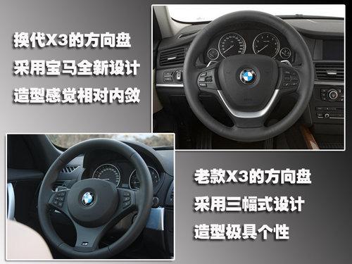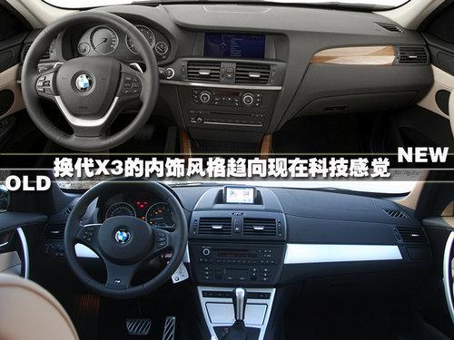 內(nèi)飾的風(fēng)格,老款X3經(jīng)過將近4年的歲月,設(shè)計風(fēng)格顯然有點趕不上潮流,大面積顏色裝飾感覺缺乏質(zhì)感,中控臺的設(shè)計也比較有復(fù)古。換代X3的內(nèi)飾采用了寶馬全新的設(shè)計感覺,簡單的中控臺設(shè)計很直觀,桃木材質(zhì)的使用更加突出了內(nèi)飾的高品質(zhì)。