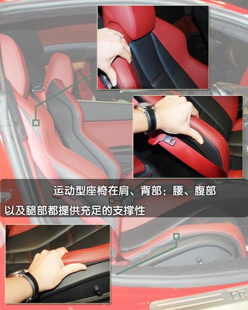 458Italia的兩只座椅“最大限度”的兼顧了舒適性,至少我認(rèn)為它們坐上去還算非常舒服。盡管較深的凹槽以及較硬的座椅填充物都是為極限駕駛而衍生的設(shè)計(jì),但是舒適性還算不錯(cuò)。同時(shí)它的肩部、腰部以及腿部支撐也會比大部分跑車或是超級跑車來的更加堅(jiān)實(shí)。