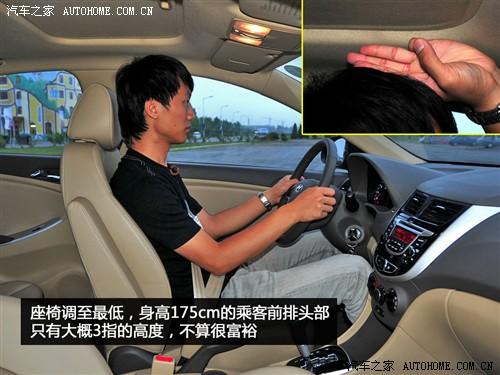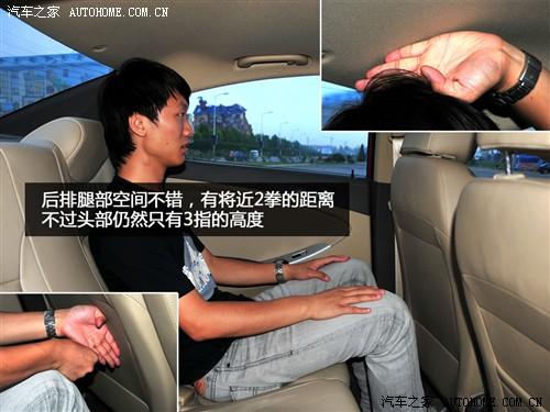 圖中的體驗(yàn)著身高175cm左右,在調(diào)整好合適的坐姿之后,前排頭部只有三指,而后排也僅僅3指,所以這點(diǎn)證明了流線型的車身線條還是會(huì)給頭部一些小的影響。當(dāng)然,超長的軸距直接帶來了腿部空間的提升,作為小型車來說后排能達(dá)到兩拳的長度確實(shí)不多見。
