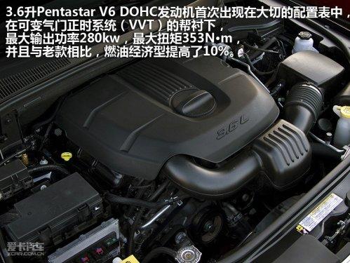 Manley曾說:“你在各種路況下都能看到大切諾基。”新大切首先用兩款發(fā)動(dòng)機(jī)和變速箱來印證Manley的這句話。3.6升Pentastar V6 DOHC發(fā)動(dòng)機(jī)首次出現(xiàn)在大切的配置表中,在可變氣門正時(shí)(VVT)的幫襯下,能發(fā)出210千瓦的最大功率和347牛米的最大扭矩,并且與老款相比,燃油經(jīng)濟(jì)型提高了10%,官方給出的拖車牽引能力達(dá)到了2258公斤。