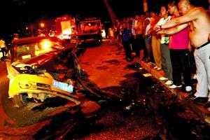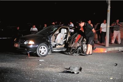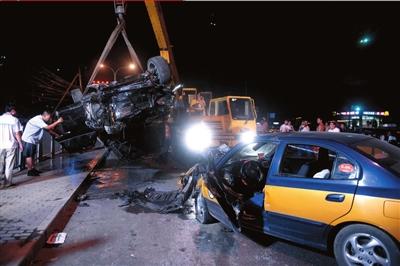 “有‘嗡嗡’的馬達(dá)聲,只看到一道黑影閃過。”目擊者翟女士說,當(dāng)時酒仙橋路上一輛黑色轎車由南向北疾速行駛,“咣”地一聲悶響,迎面將一輛羚羊轎車撞得原地打轉(zhuǎn),隨后繼續(xù)前行。緊接著,不遠(yuǎn)處再次傳來碰撞聲,一輛逆向車道上的出租車“被黑轎車頂回去三四米”。黑轎車隨即變向,撞壞橋邊護(hù)欄墜河。