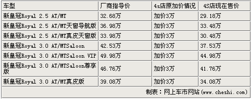 在豪華私家車市場,針對中國消費者偏好“大車”的需求,各大主力車型進行了加長設(shè)計,一汽豐田旗下旗艦車型-------日系的皇冠家族也不例外,加長新皇分別搭載了2.5L、3.0L和4.3L引擎,共計9款車型,售價32.68萬-89.95萬元。整體性能、科技含量及豪華感大幅提升。根據(jù)網(wǎng)上車市價格監(jiān)測系統(tǒng)顯示:今日新皇冠再次出現(xiàn)了較高的價格浮動,購買3.0L全系可享受到50000元的優(yōu)惠現(xiàn)金。具體車型行情如下: