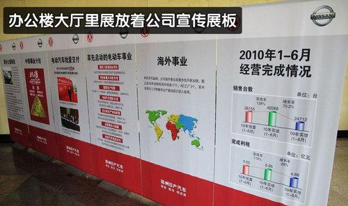 鄭州日產(chǎn)辦公樓大廳里展放著公司宣傳板,可以從中了解到鄭州日產(chǎn)今上半年的銷售完成情況,上半年共計(jì)完成了4.2萬輛。還可以了解到鄭州日產(chǎn)企業(yè)的組織構(gòu)架,和直接了解到鄭州日產(chǎn)目前去不在售的車型,共計(jì)8款,其中不包括卡車和原裝進(jìn)口的碧蓮。