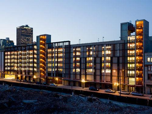 這座耗資2800萬美元,由舊百貨商場翻修而成的車庫,在設(shè)計中采用了老溫哥華橋的部件。
