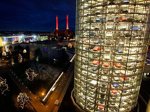 大眾汽車公司以汽車為主題的游樂園——大眾汽車城 (Autostadt),包括一個汽車博物館,駕駛演習場,供參觀的汽車工廠和這兩座20層的立體車庫——“汽車筒倉”。