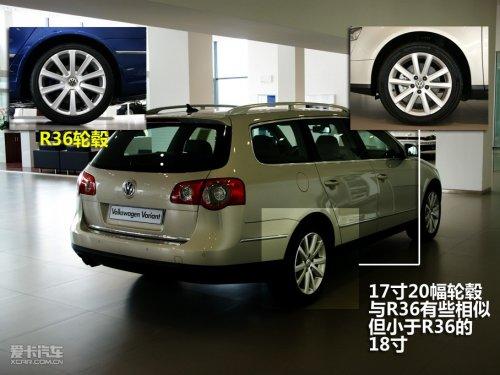 打眼一看PASSAT旅行版的十幅輪轂與R36的輪轂非常相似,仔細(xì)對比之后才能發(fā)現(xiàn)不同。PASSAT旅行版的輪轂尺寸為17寸,R36則配備了18寸輪轂,并且在細(xì)節(jié)上也有些許不同。不過從視覺上二者的確十分相似,而這款輪轂的賣相個(gè)人認(rèn)為好于目前2011款邁騰所配輪轂。輪胎規(guī)格235/45 R17,擁有較大的扁平度,在視覺更加接近了R36。