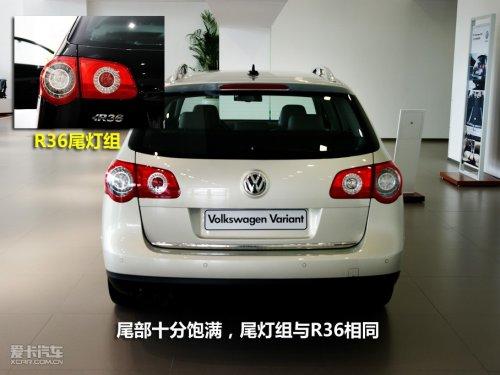 PASSAT旅行版與PASSAT高性能版R36在外觀上也非常相似。車頂?shù)幕【比較平緩,車身側(cè)面一條鍍鉻防擦條從前前門一直延伸至車尾,令車身更顯修長。與國產(chǎn)邁騰一樣,PASSAT旅行款的軸距同為2709mm,沒有進(jìn)行加長。而車頂?shù)男欣罴軇t是旅行版車型的必備配置。與車身同色的行李架在視覺上與整車完整度極高,而且對于愛好的旅行的車主而言,行李架的實(shí)際意義非常重要。