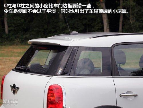 MINICountryman的造型比例比較協(xié)調(diào),車頭部分所占的比重剛剛好,前風(fēng)擋的角度比較大,在加上直來(lái)直去的車頂線條,Countryman看上去依舊很干練,當(dāng)我們看慣了路上跑的MINI Cooper之后,也不會(huì)覺(jué)得Countryman有任何臃腫的感覺(jué)。C柱與D柱之間的小窗比車門邊框要矮一些,令車身側(cè)面不會(huì)過(guò)于平淡,同時(shí)也引出了車尾頂端的小尾翼。環(huán)繞車身一周的黑色塑料裝飾無(wú)疑顯露出Countryman的跨界一面。
