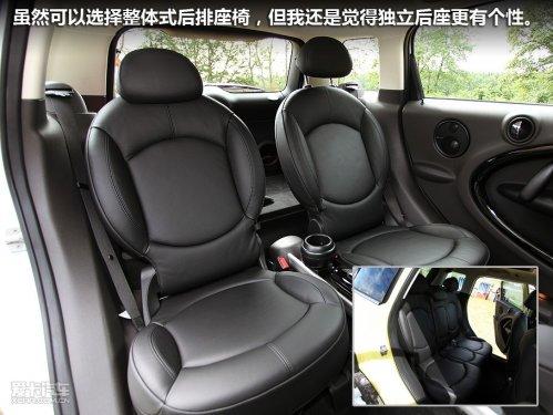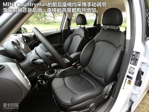 MINICountryman的前后座椅均采用手動調(diào)節(jié),無論前排還是后排,座椅的高度都有所增加,雖然調(diào)節(jié)范圍夠大,但也沒有MINI Cooper那“貼地”的駕駛感受。這樣做的好處是顯而易見的,MINICountryman的車內(nèi)視野非常好,座椅的各項承托力也比較出色,所以駕駛員更多收獲的是輕松自在的感受。
