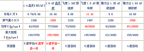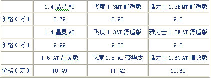 上表列出了晶靈版晶銳、飛度和雅力士三款車型的售價,從中我們可以發(fā)現(xiàn):首先,在手動車型方面,晶靈版1.4MT車型的售價僅為8.79萬,比雅力士和飛度都要低;其次,晶靈版晶銳1.4AT在價格上看似要比競品的1.3L AT車型稍高,但考慮到晶銳采用的是Tiptronic6擋手自一體變速箱,而飛度和雅力士都是四檔自動,落后不止一點,加上晶銳的配置要豐富很多,這點在后文會有詳細介紹,綜合來看晶銳1.4AT晶靈版的性價比優(yōu)勢還是相當(dāng)突出的。另外,晶銳1.6L AT晶靈版,無論是品質(zhì)上,還是配置上都擁有同級競品車型所無可比擬的優(yōu)勢,而其價格卻要大大低于這些競品。