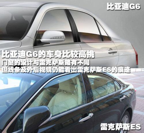 雖然以上圖片的角度有所不同,但我們可以從線條看的出來,比亞迪G6的車身比較高挑,門窗的線條雖然非常相似,但軌跡有明顯不同。比亞迪G6也采用了可折疊外后視鏡,并且集成了轉(zhuǎn)向燈功能,從上圖中可以看出來是LED轉(zhuǎn)向燈,與雷克薩斯ES的風(fēng)格非常相近。