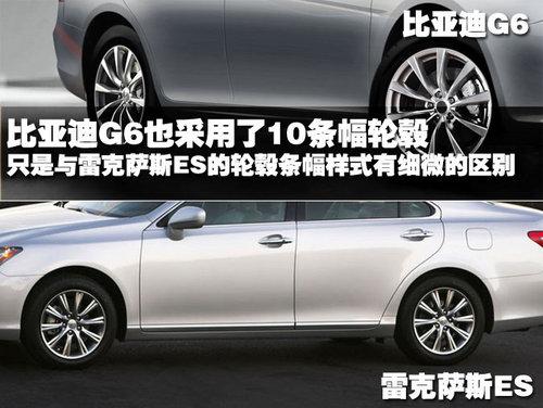 比亞迪G6采用的是10條幅鋁合金輪轂,目前還不確定輪胎的尺寸。但我們可以從輪轂樣式上看出來,比亞迪G6模仿雷克薩斯ES的確非常仔細(xì),這兩款車只有輪轂條幅的樣式有很細(xì)微的區(qū)別。多條幅的輪轂樣式看上去帶有幾分運動感,似乎與比亞迪G6整車的豪華定位略有不符。
