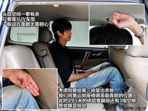 漢蘭達3.5升車型都為7座,由于車身比較寬大,使得它的第三排座椅容下兩個胖子也問題不大,或許是為了照顧第三排的空間,第二排座椅的空間不算特別寬敞,身高為1.85米的乘客調(diào)到合適的駕駛位置,后排腿部到前排只剩下3指的余量。關(guān)于漢蘭達的詳細體驗和測試文章,請參看以下鏈接。