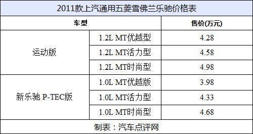 2010款上汽通用五菱雪佛蘭樂馳