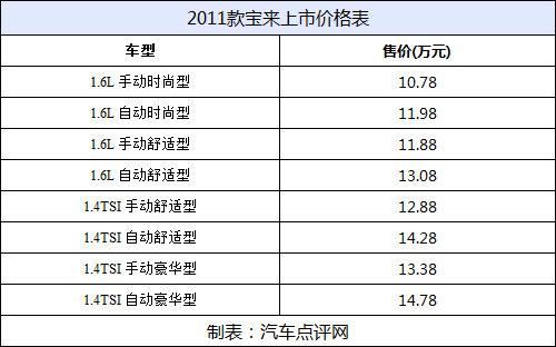 2011款寶來最主要的特點(diǎn)是增加了1.4TSI車型,并成為目前大眾汽車旗下最便宜的帶有TSI和DSG系統(tǒng)的車型,并且曾經(jīng)一直在用的新寶來這個(gè)名字也被“正名”為寶來。