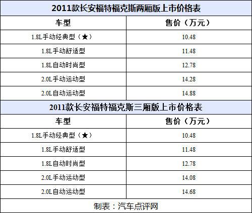 帶有星號(hào)的車型為2011款福克斯新增加車型
