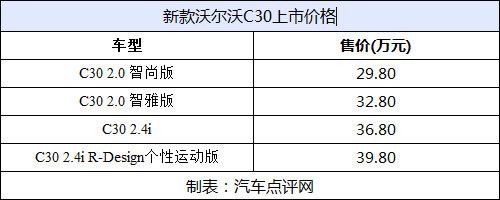 新款沃爾沃C30在車身外型上進行了一些細微調(diào)整,使其更加運動,并且車身顏色增加了動感的火焰橙顏色,而動力/傳動系統(tǒng)則繼續(xù)沿用沃爾沃汽車的2.0L和2.4L發(fā)動機作為動力來源。