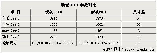 上海大眾即將批量生產(chǎn)的全新第五代POLO在車身尺寸上與國外已經(jīng)上市銷售的車型一致,而與2006年推出的小改款車型POLO勁情大了一小圈。第五代Polo來自大眾的PQ25平臺(tái),長比第四代車型長了5.4厘米,寬度增加了3.2厘米,軸距加長了1厘米,高度僅增加了0.3毫米,在高度上幾乎沒有變化。