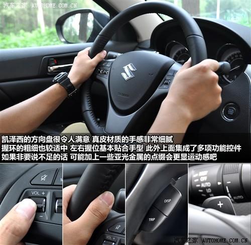 進(jìn)入車(chē)內(nèi)坐在駕駛席上,凱澤西的方向盤(pán)首先得到了我們的認(rèn)可。作為一款運(yùn)動(dòng)車(chē)型,方向盤(pán)的手感直接影響到駕駛者的感受,而凱澤西裝備的這款方向盤(pán)無(wú)論是材質(zhì)做工還是功能表現(xiàn)我們都挑不出有什么不足。音量調(diào)節(jié)是通過(guò)方便順手的撥輪方式實(shí)現(xiàn)的,左右握位的造型也很貼合手型,還帶有換擋撥片,一款運(yùn)動(dòng)型車(chē)該有的凱澤西基本都做到了,只是如果要加入點(diǎn)亞光金屬元素的點(diǎn)綴就更好了。