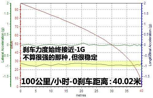 加速性能沒有能讓我們體驗(yàn)到激情,但剎車能力絕對(duì)令人稱贊!平均剎車成績40.02米,而且?guī)状蝿x車都完全沒有出現(xiàn)熱衰減的現(xiàn)象,懸掛對(duì)于車身前傾的控制也非常理想。