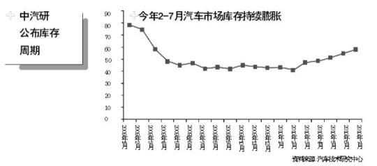 自4月開始,車市銷量已連續(xù)4個月下滑,由于產(chǎn)量下降一般有滯后效應(yīng),終端市場上庫存一直增加,國產(chǎn)汽車庫存周期已經(jīng)從41天上升到7月的58天,其中,乘用車庫存周期由57天增加到60天,商用車庫存周期由49天增加到50天。